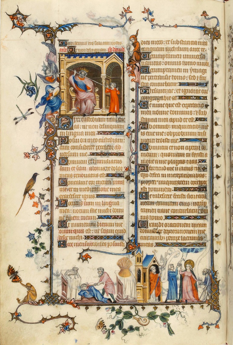 Vers le XIVᵉ siècle en Europe médiévale, l’art sacré s'exprime à travers des enluminures stylisées et hiératiques, principalement à la tempera et à la feuille d'or. Jean Pucelle y joue un rôle majeur.